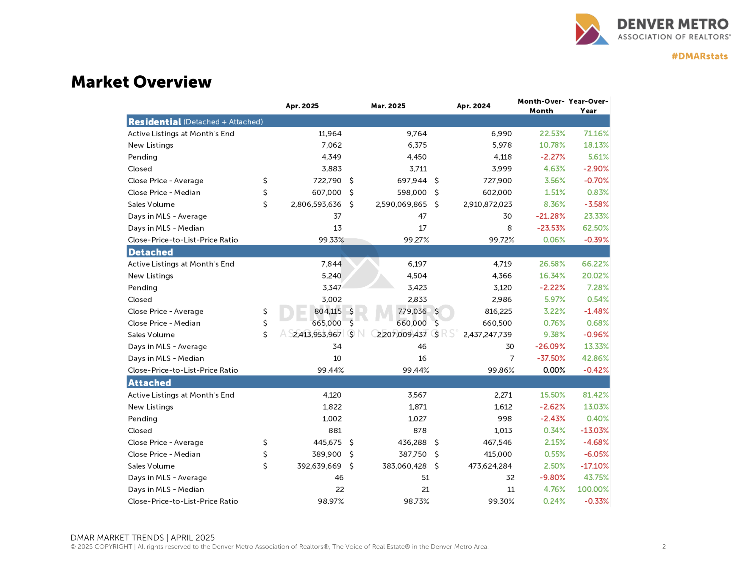 Leading up to Easter, we saw more new listings than the number of homes going under contract, which continued to build our active inventory. Sellers are competing for a more limited pool of buyers. In Denver in Q1, nearly 60% of sellers offered some kind of concession to buyers at closing.